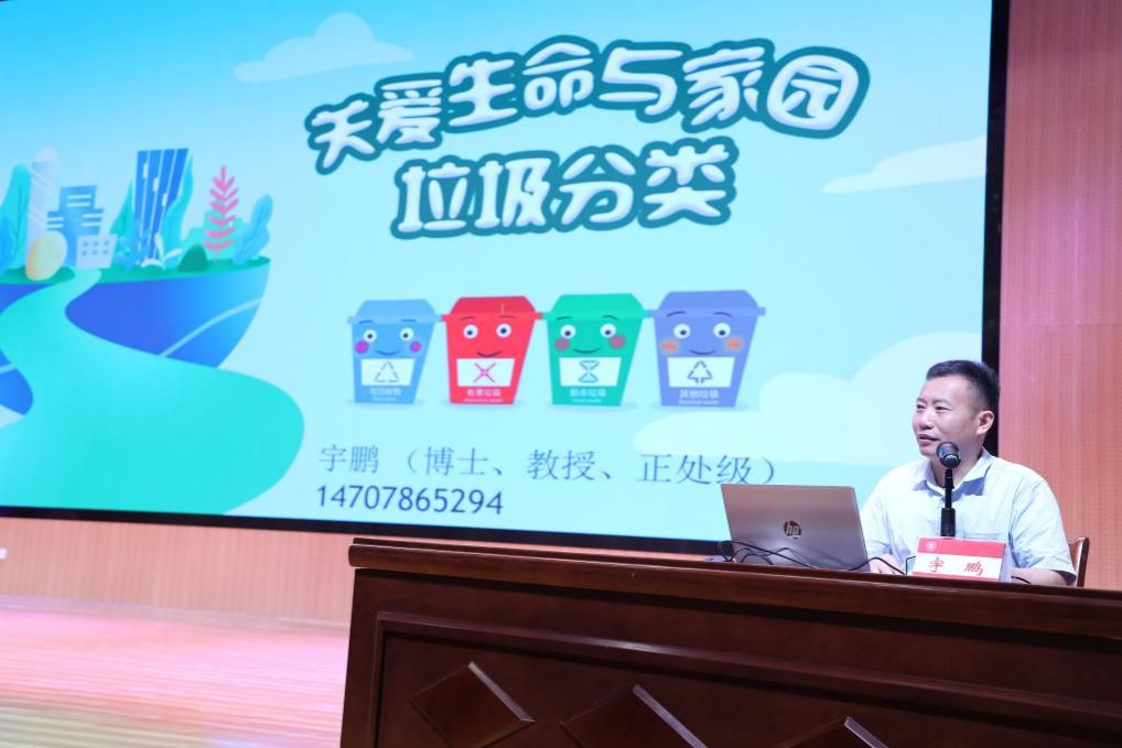 活動邀請了南寧師范大學教授宇鵬作題為《關(guān)愛生命與家園-垃圾分類》專題講座。他分享了垃圾分類的總體成效、開展垃圾分類的原因、國內(nèi)垃圾分類的現(xiàn)狀、垃圾分類對策等內(nèi)容,和與會人員探討學校垃圾分類的實施和管理措施。