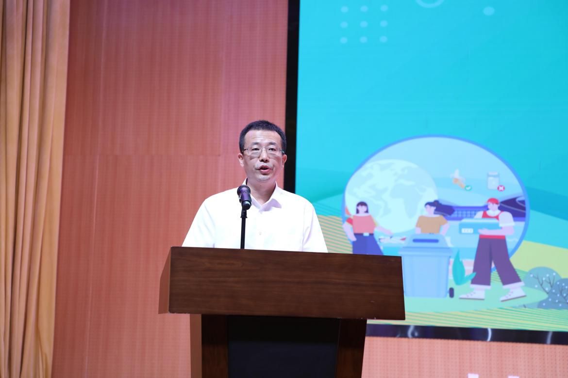 劉進校長在致辭中表示,當前,全區(qū)上下正深入學習貫徹習近平生態(tài)文明思想,加快建設(shè)美麗廣西,垃圾分類作為這項系統(tǒng)工程的基礎(chǔ)環(huán)節(jié)和全民行動,關(guān)系著人居環(huán)境改善、資源節(jié)約利用和社會文明提升。學校始終與地方經(jīng)濟社會發(fā)展同頻共振,堅持綠色發(fā)展理念,致力于資源節(jié)約、環(huán)境保護,不僅在專業(yè)群建設(shè)上體現(xiàn)綠色發(fā)展智慧,還將垃圾分類這件“關(guān)鍵小事”納入學校全局統(tǒng)籌謀劃,努力提高廣大師生的生活垃圾分類和環(huán)保意識,著力建設(shè)節(jié)約、健康、文明的綠色校園。