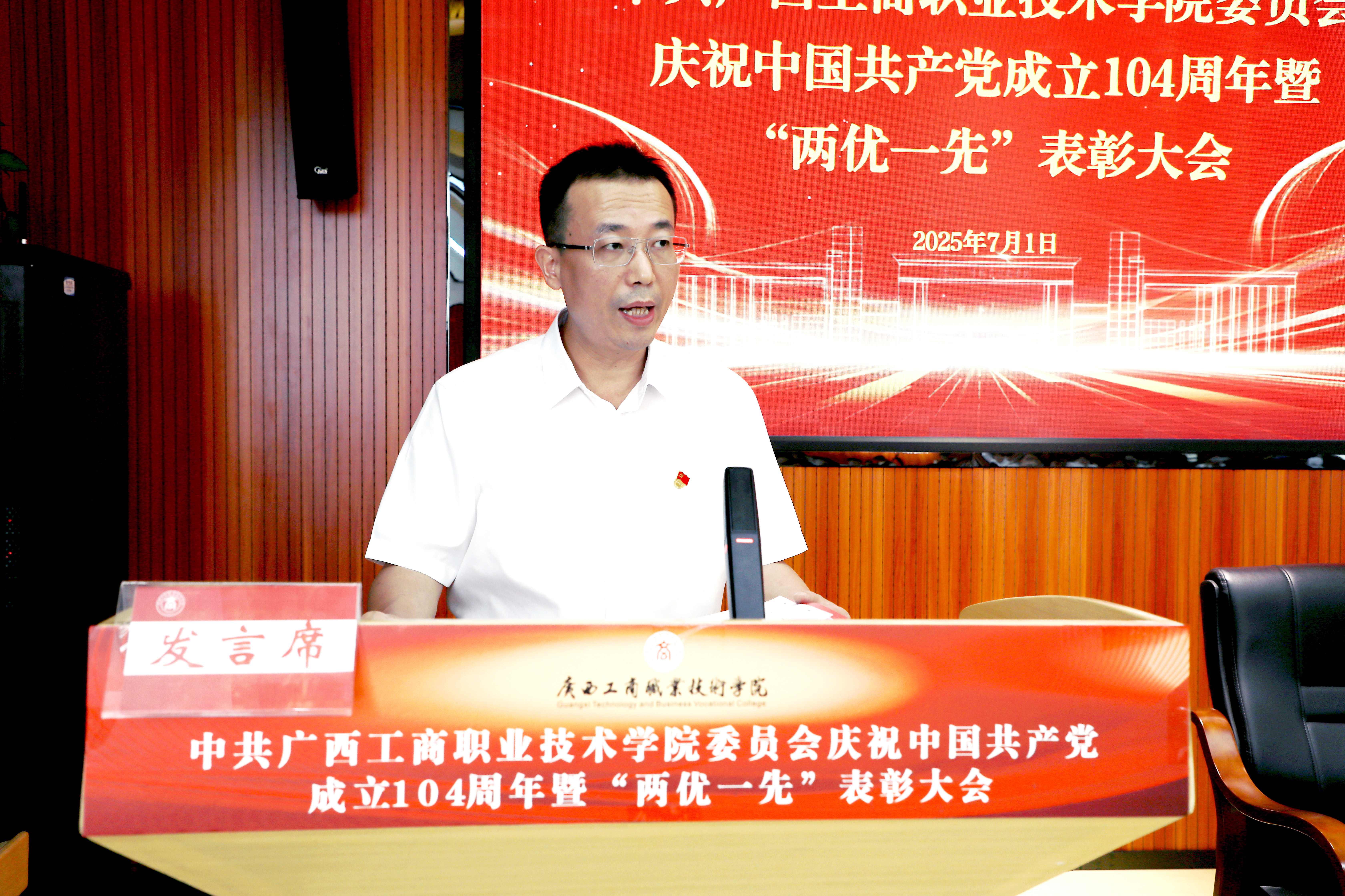 大會上,李維發(fā)表講話。他代表學(xué)校黨委向全校師生黨員致以節(jié)日的問候,向新入黨的同志表示祝賀,向榮獲“光榮在黨50年”紀(jì)念章的同志,以及受表彰的先進(jìn)集體和個人致以敬意。他表示,中國共產(chǎn)黨104年的奮斗歷程,始終保持旺盛的生機活力,黨的吸引力、凝聚力、戰(zhàn)斗力不斷增強。進(jìn)入新時代以來,在中國共產(chǎn)黨的堅強領(lǐng)導(dǎo)下,中國的發(fā)展巨輪劈波斬浪、行穩(wěn)致遠(yuǎn),經(jīng)濟實力、科技實力、綜合國力躍上新臺階,高質(zhì)量發(fā)展扎實推進(jìn)。