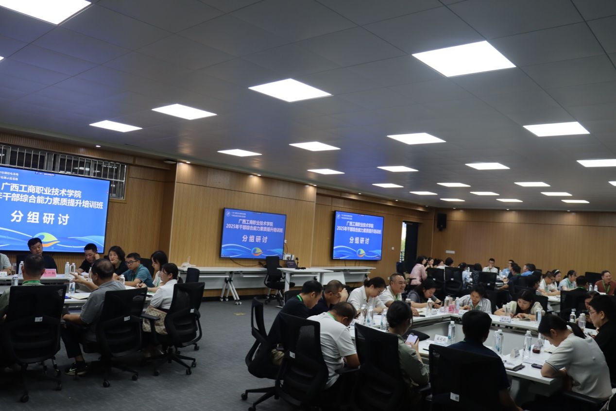 本次培訓(xùn)緊扣學(xué)校發(fā)展大局和干部隊(duì)伍建設(shè)需求,精心設(shè)計(jì)課程,采用專題教學(xué)、現(xiàn)場(chǎng)教學(xué)、分組研討等多種形式。專題教學(xué)聚焦核心能力,邀請(qǐng)專家深入解讀黨的作風(fēng)建設(shè)、教育強(qiáng)國(guó)建設(shè)、網(wǎng)絡(luò)意識(shí)形態(tài)安全、人工智能工具應(yīng)用(DeepSeek、豆包等)、領(lǐng)導(dǎo)干部壓力管理及“雙高”建設(shè)實(shí)踐等專題,有效夯實(shí)學(xué)員理論基礎(chǔ)與履職能力?,F(xiàn)場(chǎng)教學(xué)組織學(xué)員赴桂林古蓮文化街、廣西黨風(fēng)廉政教育基地(桂林)開(kāi)展廉政教育;參觀桂林電子科技大學(xué)人工智能成果與教育教學(xué)展廳,學(xué)習(xí)借鑒“人工智能+”領(lǐng)域先進(jìn)經(jīng)驗(yàn)。分組研討環(huán)節(jié),組織學(xué)員們圍繞“人工智能背景下,如何將人工智能融入學(xué)校黨建工作、教育教學(xué)工作全過(guò)程”主題,結(jié)合崗位實(shí)際深入交流,碰撞思想火花,實(shí)現(xiàn)互學(xué)互鑒。