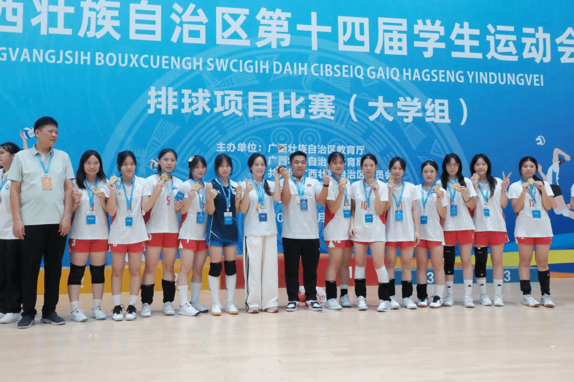 2025年7月10日,廣西壯族自治區(qū)第十四屆學(xué)生運(yùn)動(dòng)會(huì)排球項(xiàng)目(大學(xué)組)在桂林醫(yī)科大學(xué)體育館燃情開(kāi)賽。我校代表隊(duì)由王秀美、凌展旭老師執(zhí)教女排,鄧淇元、韋武成老師執(zhí)教男排,范金明老師擔(dān)任后勤保障,24名運(yùn)動(dòng)員歷經(jīng)鏖戰(zhàn),最終斬獲高職高專(zhuān)女子組冠軍、男子組亞軍的輝煌戰(zhàn)績(jī)!