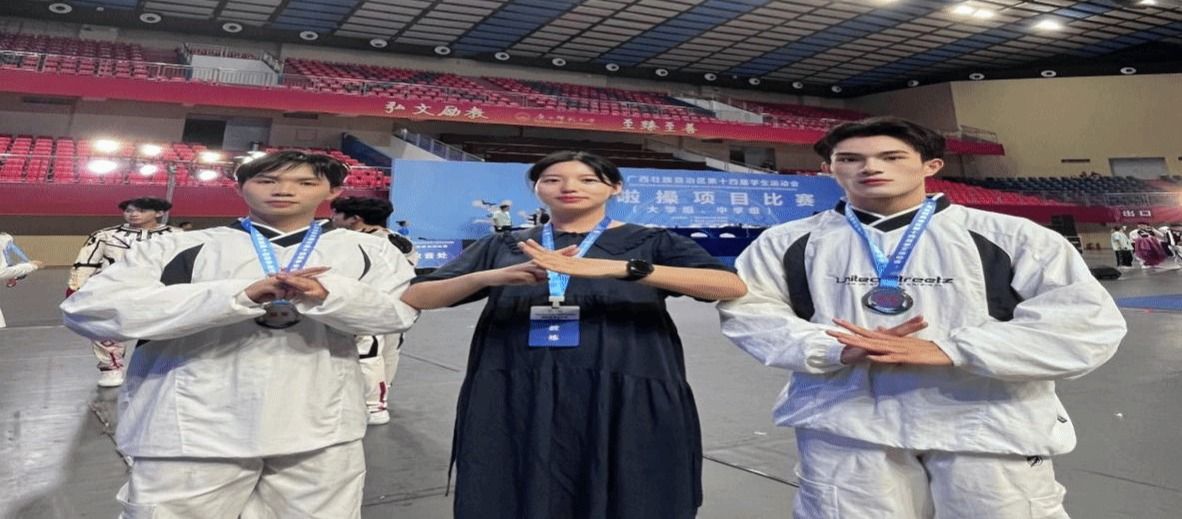 啦啦操項(xiàng)目同樣精彩紛呈,雙人街舞組合以高難度動作贏得銀牌,集體街舞隊(duì)獲得第六名。教練袁曉紅、尹成功、任鵬的創(chuàng)意編排,讓活力與藝術(shù)在賽場綻放,共收獲2項(xiàng)榮譽(yù)。