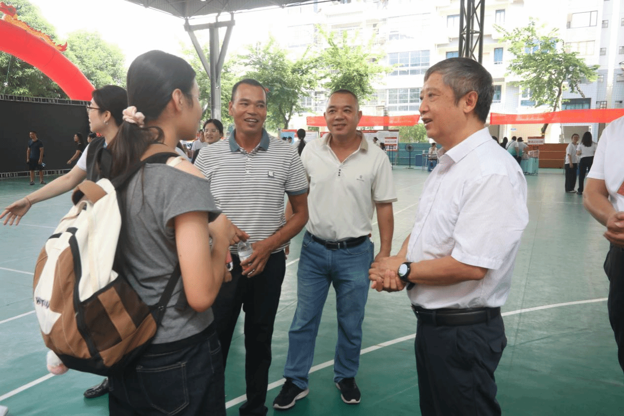 (學(xué)校副校長闕勇平(右三)在武鳴校區(qū)與新生交談)