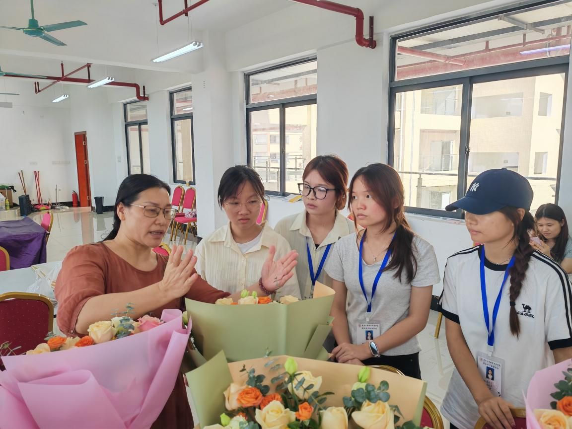 她的課堂往往是“沉浸式”的:她不愛(ài)念PPT,更愿把教室變成“職場(chǎng)模擬場(chǎng)”。教餐飲服務(wù),就比賽擺臺(tái)速度與規(guī)范;講前廳接待,就設(shè)置“證件丟失”“預(yù)訂出錯(cuò)”等難題,讓學(xué)生分組找解決方案。她常常在學(xué)生操作時(shí)突然提問(wèn):“左撇子客人該怎么調(diào)整刀叉?”以此引導(dǎo)學(xué)生跳出定式,站在客人角度思考。