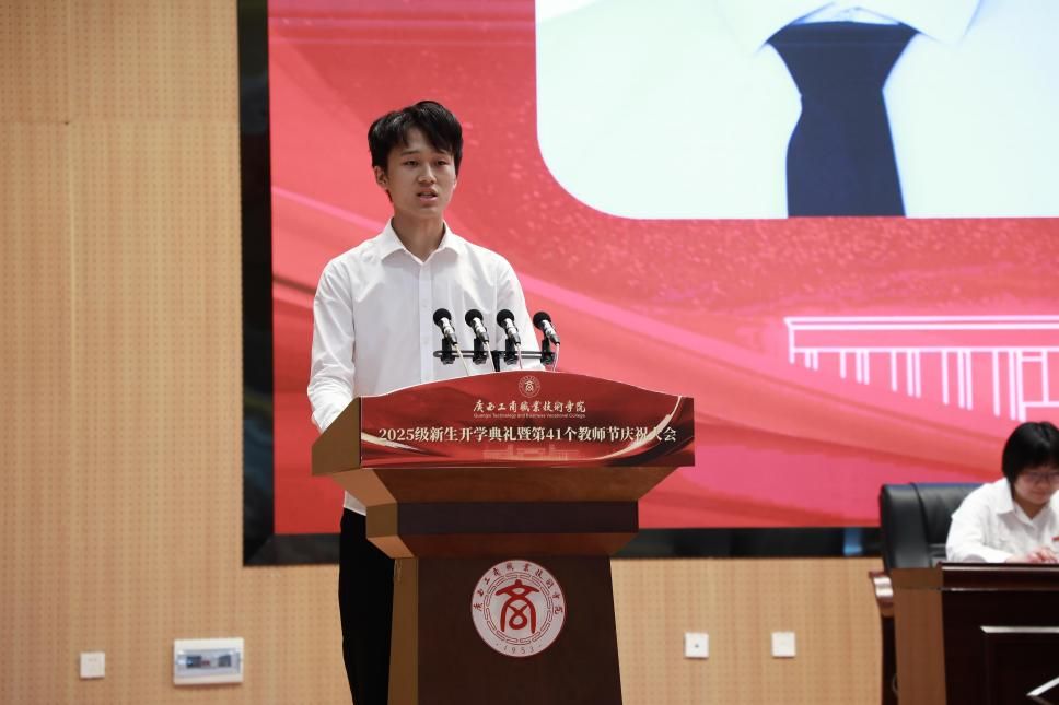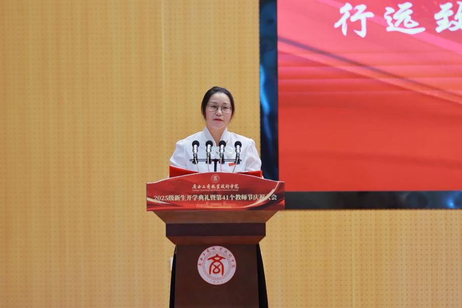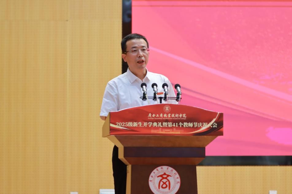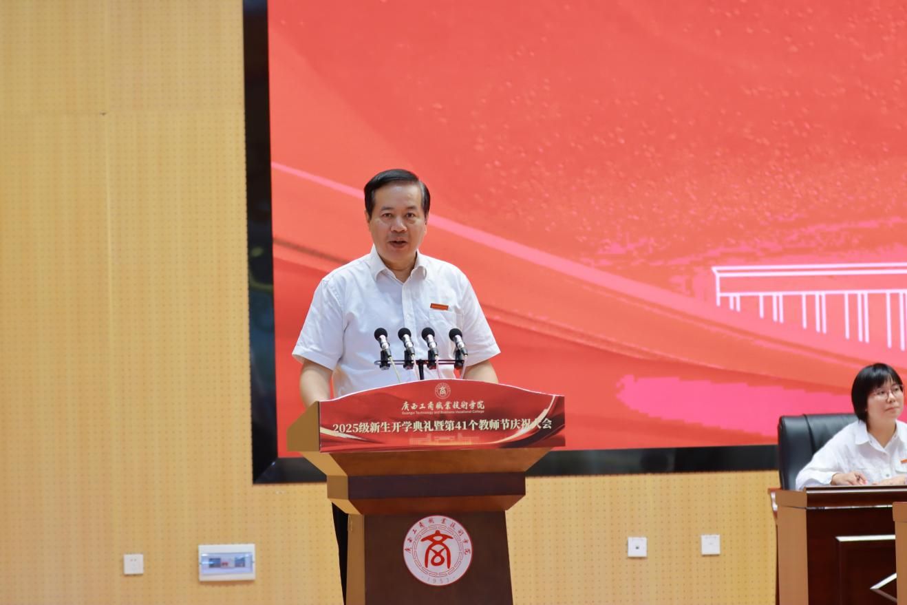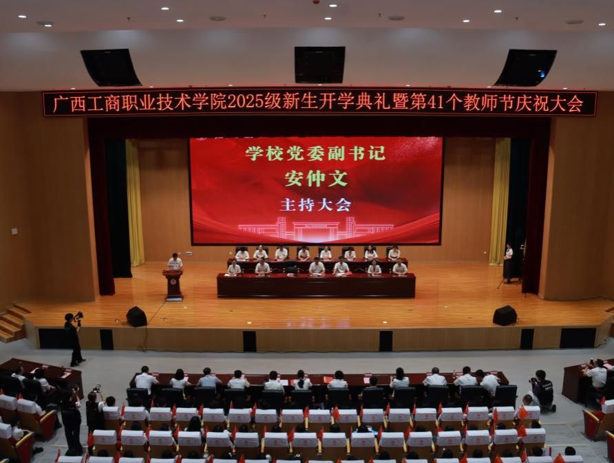 為熱烈歡迎2025級(jí)新生入學(xué),隆重慶祝第41個(gè)教師節(jié),9月10日,學(xué)校以線上線下相結(jié)合的方式在武鳴校區(qū)、鵬飛校區(qū)、中堯校區(qū)同步舉行2025級(jí)新生開(kāi)學(xué)典禮暨第41個(gè)教師節(jié)慶祝大會(huì)。學(xué)校領(lǐng)導(dǎo)李維、劉進(jìn)、安仲文、韋云鳳、陳寧春、闕勇平、鄭華,各部門(mén)、各單位主要負(fù)責(zé)人,受表彰教師代表,新入職教師代表,武鳴校區(qū)2025級(jí)輔導(dǎo)員代表和2025級(jí)新生代表在線下主會(huì)場(chǎng)參會(huì),全體2025級(jí)新生及各部門(mén)、各單位教職工在線上參會(huì)。學(xué)校黨委副書(shū)記安仲文主持大會(huì)。