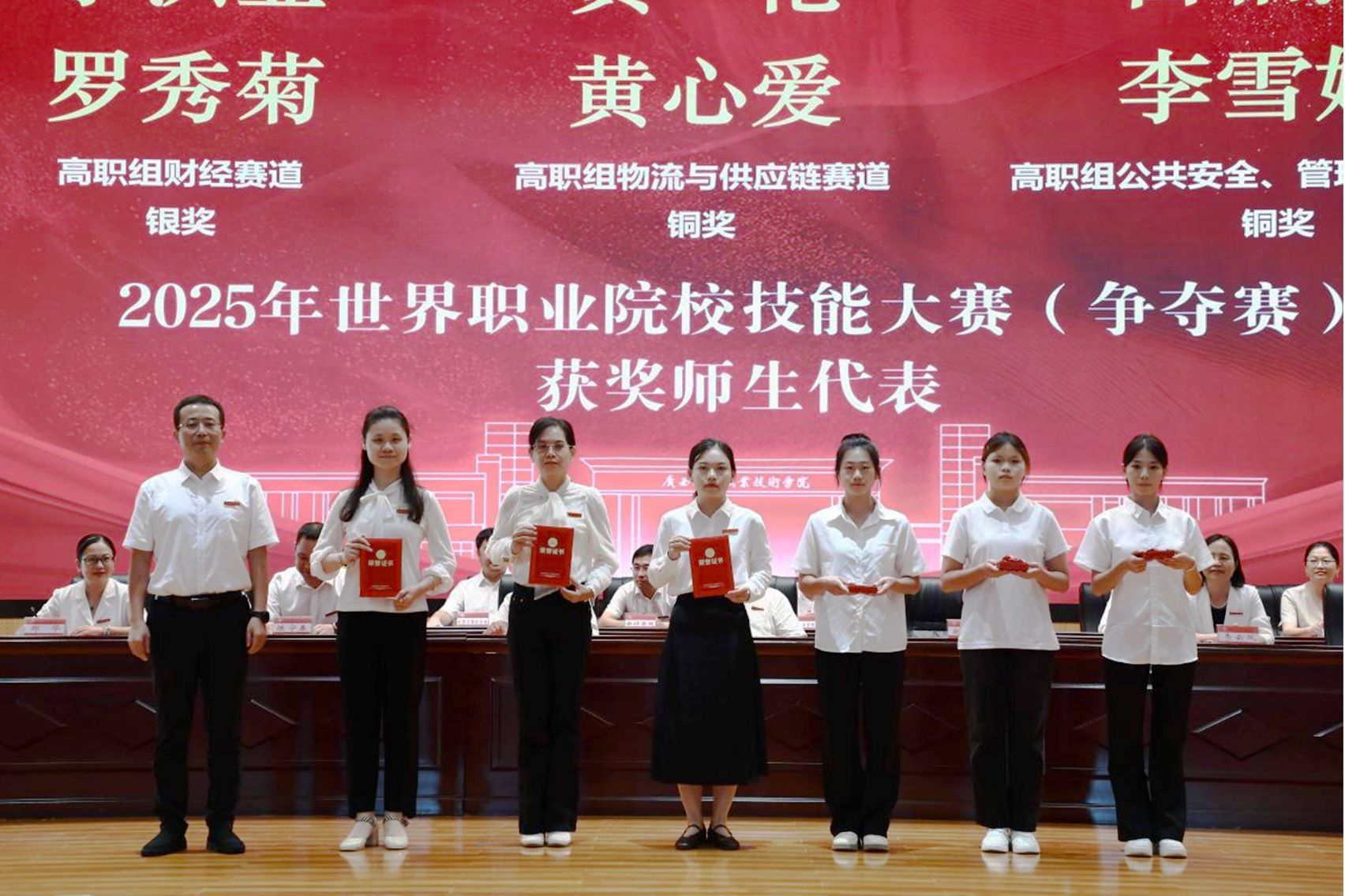 大會(huì)對(duì)學(xué)校2024年度學(xué)校優(yōu)秀教師和優(yōu)秀教育工作者代表、2025年度學(xué)校教學(xué)能手、2025年度學(xué)校教學(xué)名師、2024年中國(guó)國(guó)際大學(xué)生創(chuàng)新大賽獲獎(jiǎng)師生代表、2025年世界職業(yè)院校技能大賽(爭(zhēng)奪賽)獲獎(jiǎng)師生代表、2024年度廣西技術(shù)能手進(jìn)行了表彰。