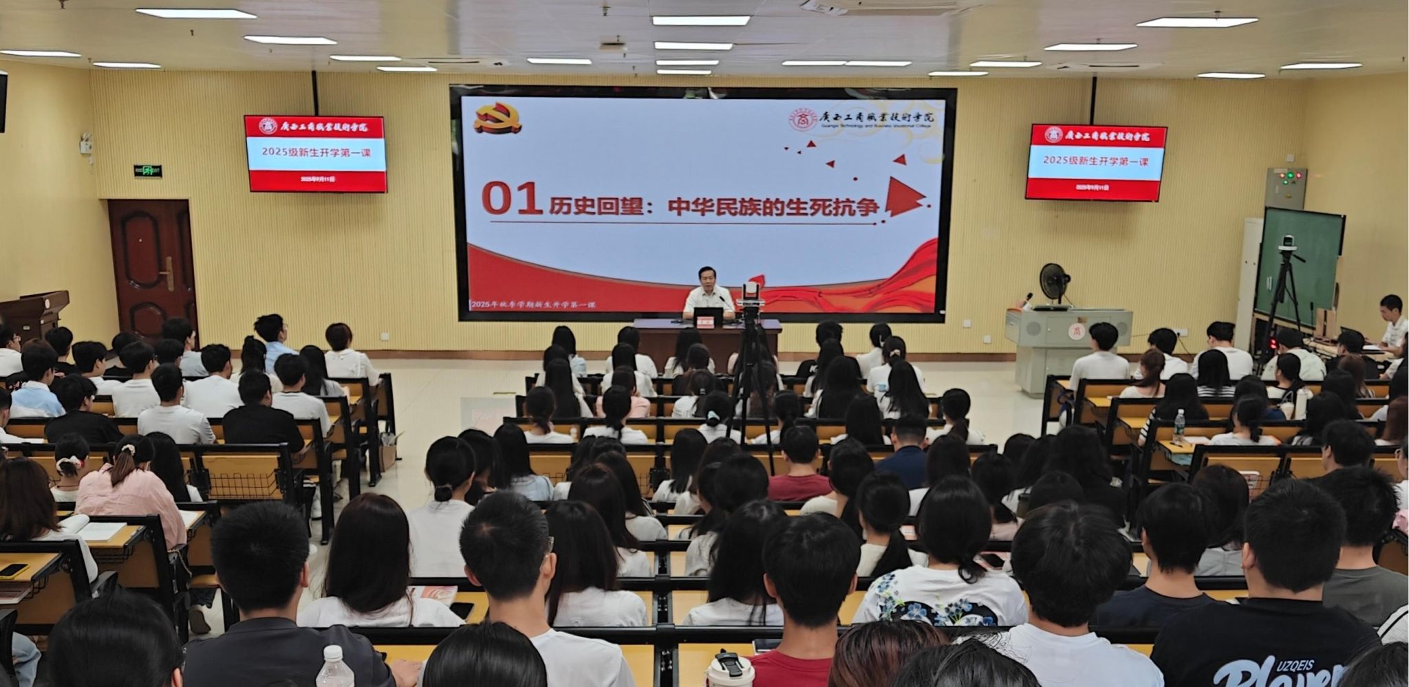 9月11日,學校黨委書記李維,黨委副書記安仲文,黨委副書記、紀委書記韋云鳳分別在武鳴校區(qū)、鵬飛校區(qū)、中堯校區(qū)為2025級新生講授開學第一課。課程以“弘揚偉大抗戰(zhàn)精神 爭做有理想、敢擔當、能吃苦、肯奮斗的新時代好青年”為主題,采取線下講授、線上直播結合的形式展開。
