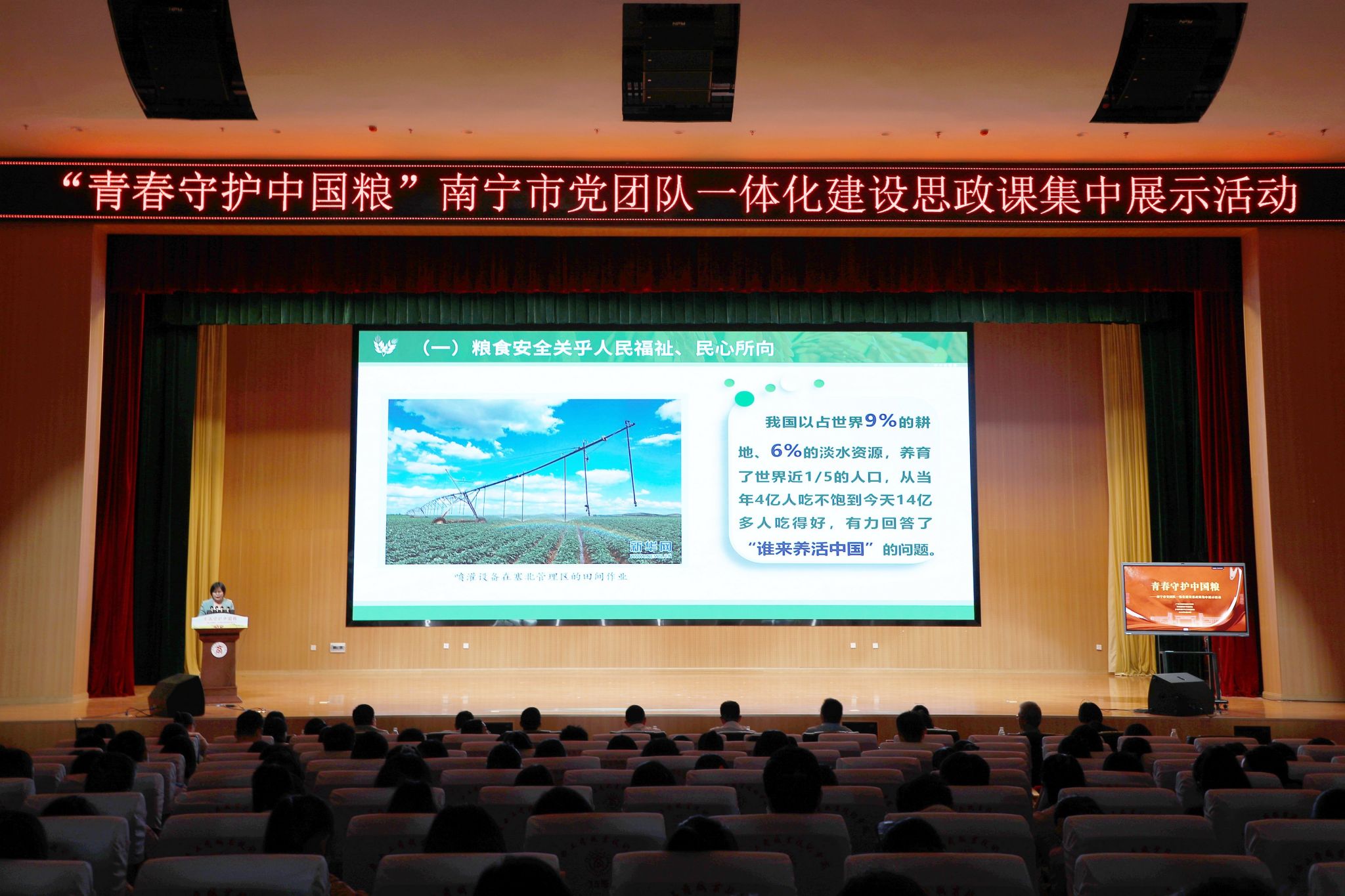 示范課展示層層遞進,覆蓋黨團隊不同群體。南寧市武鳴區(qū)城廂鎮(zhèn)第三小學大隊輔導員刁曉慧老師執(zhí)教的少先隊隊會課《紅領巾守護中國糧》,通過生動活潑的互動形式,在少先隊員心中播下珍惜糧食的種子;南寧市武鳴區(qū)民族中學團委書記韋雨貝老師主講的《糧食安全,有我!——新時代青年團員的“糧”心使命》主題團課,緊密結合中學生的認知特點,激發(fā)團員青年以實際行動踐行使命擔當;我校林勇靈副教授則為大學生帶來《守護糧食安全的青春擔當》青春思政課,從宏觀政策、科技興糧、職業(yè)理想等多維度,引導青年學子將個人所學融入國家糧食安全戰(zhàn)略。