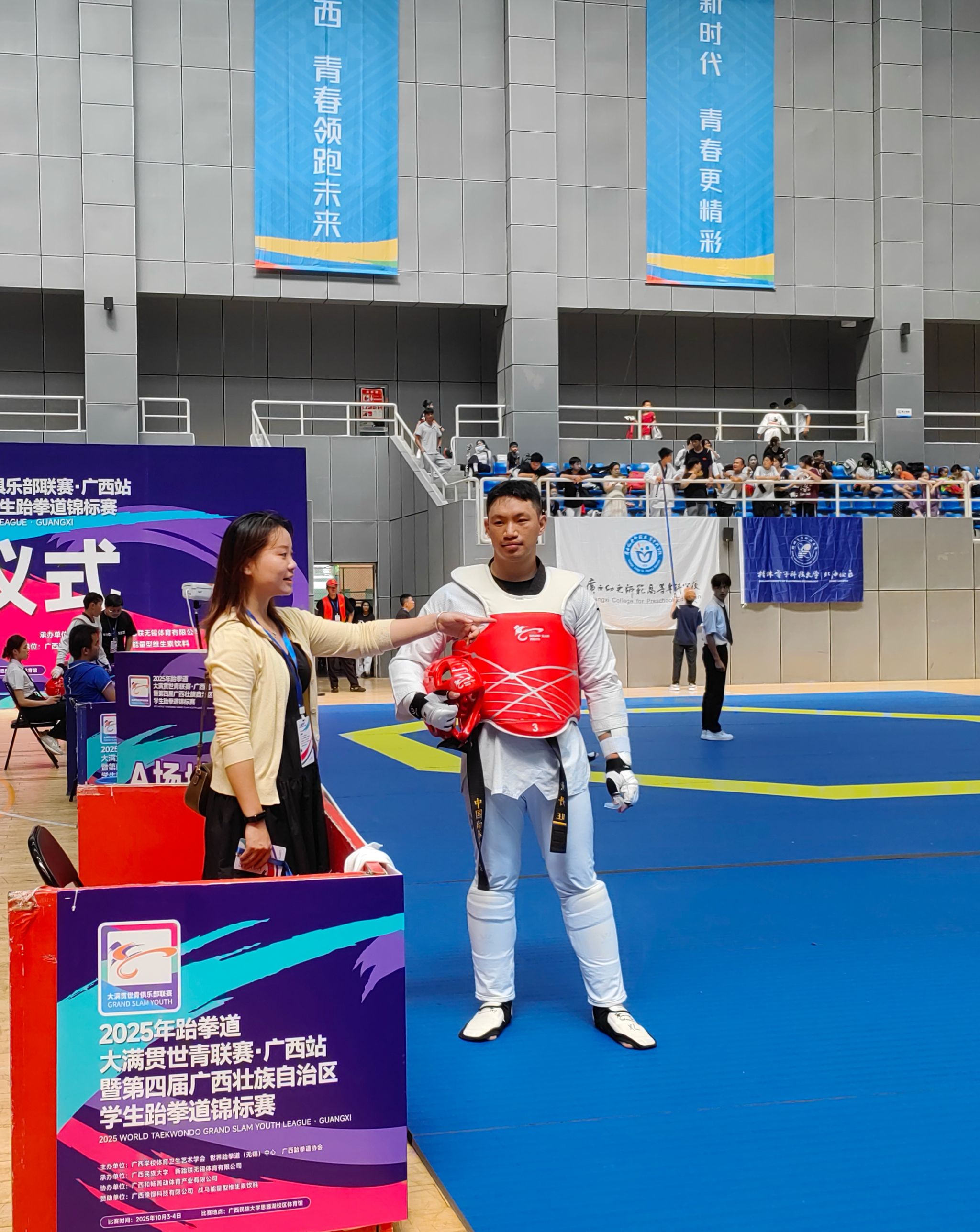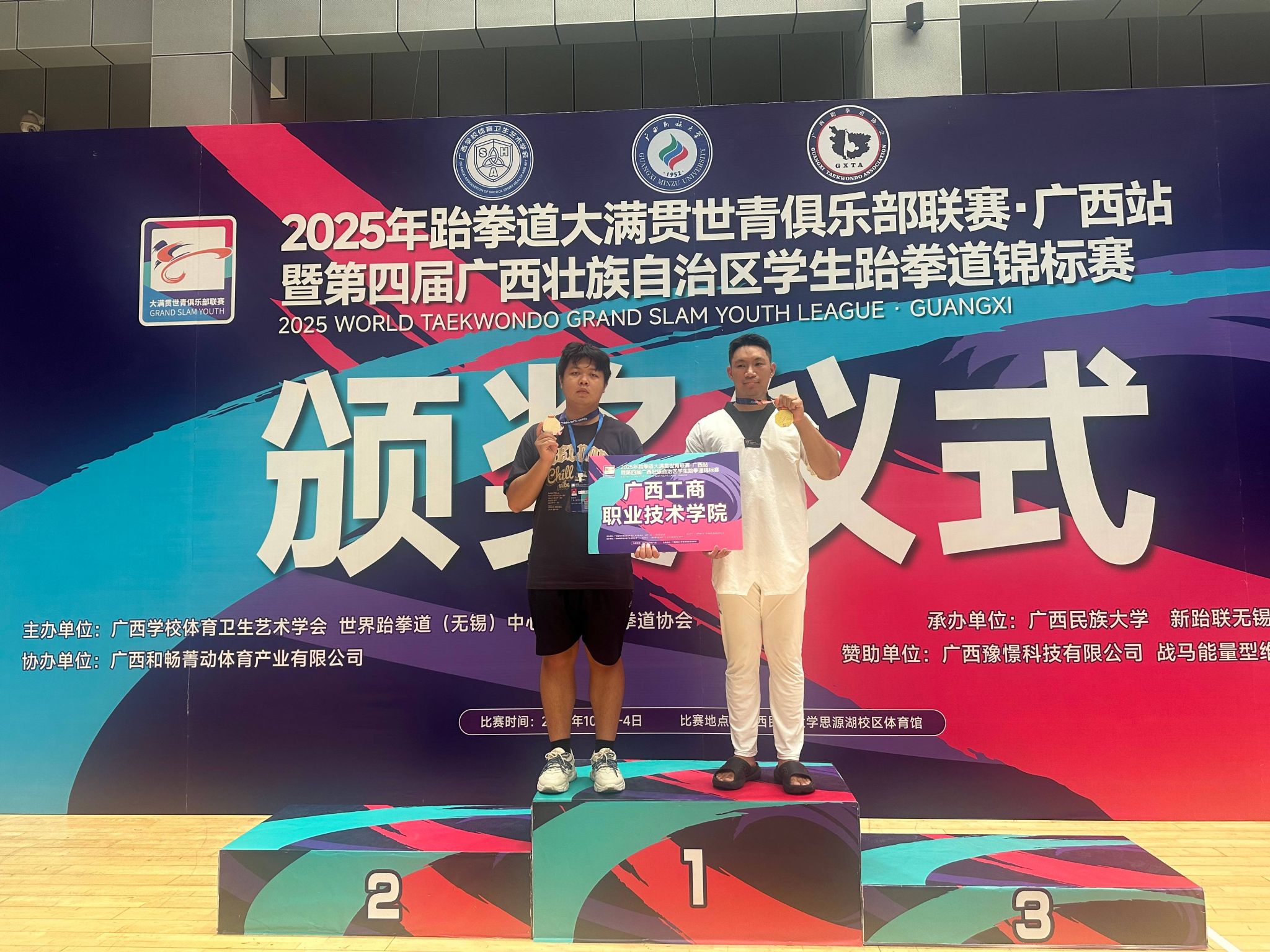 2025年10月3日至4日,在廣西民族大學(xué)(思源湖校區(qū))舉辦的跆拳道大滿貫世青聯(lián)賽(廣西站)暨第四屆廣西學(xué)生跆拳道錦標(biāo)賽中,我校代表隊(duì)斬獲金、銀雙牌及團(tuán)體三等獎。