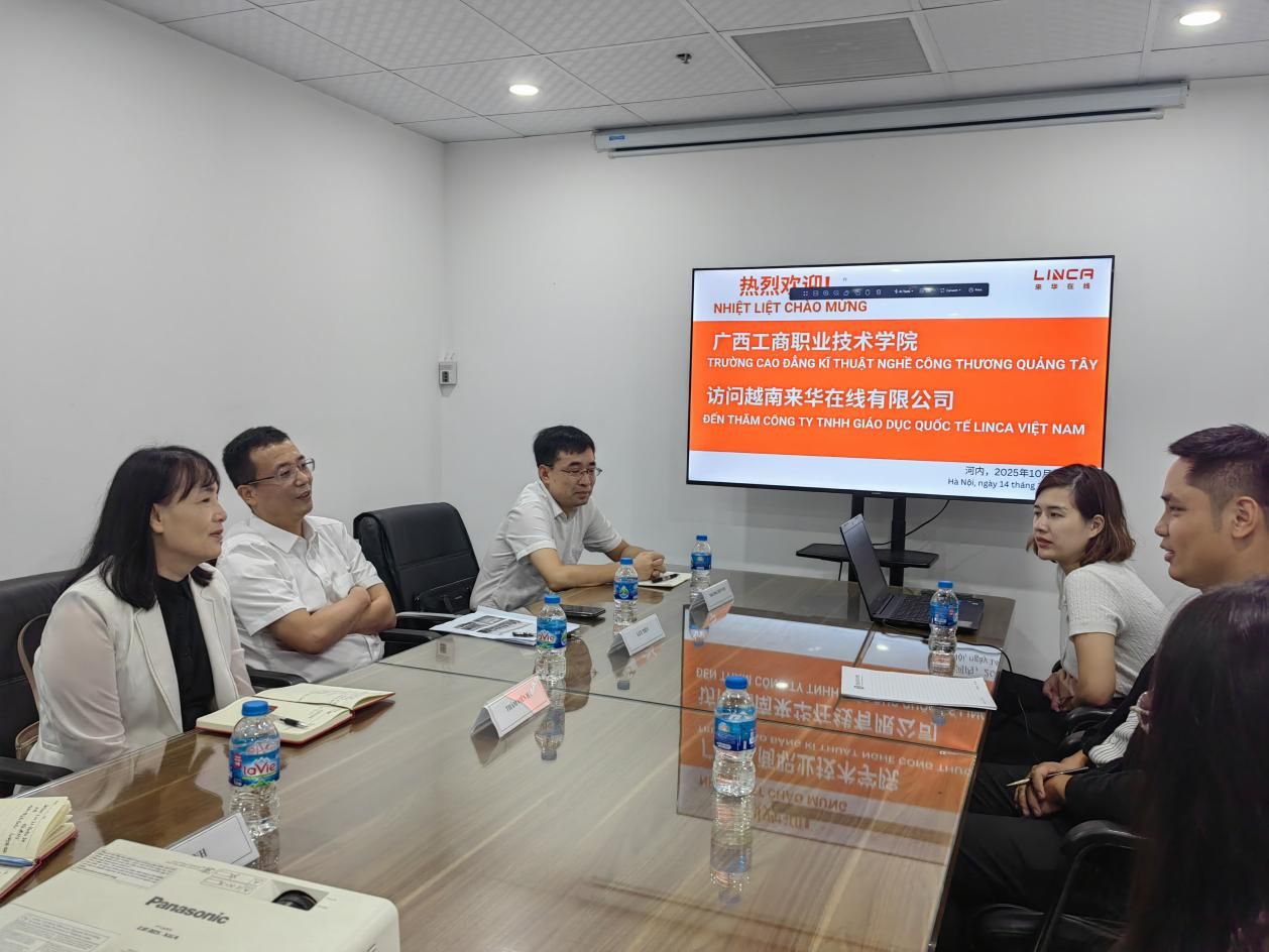 在越南來華在線國際教育有限公司,代表團與公司負(fù)責(zé)人阮俊永等進行座談。雙方圍繞服務(wù)中資企業(yè)及本地企業(yè)高技能人才需求,探討共建“中文+技能”職業(yè)教育項目的可行性與實施路徑。雙方一致認(rèn)為,應(yīng)充分發(fā)揮橋梁紐帶作用,推動廣西職業(yè)院校與越南院校及在越中資企業(yè)建立常態(tài)化合作機制,共同推進“國際化、數(shù)字化、綠色化”高質(zhì)量職業(yè)教育發(fā)展,實現(xiàn)產(chǎn)學(xué)研用深度融合。