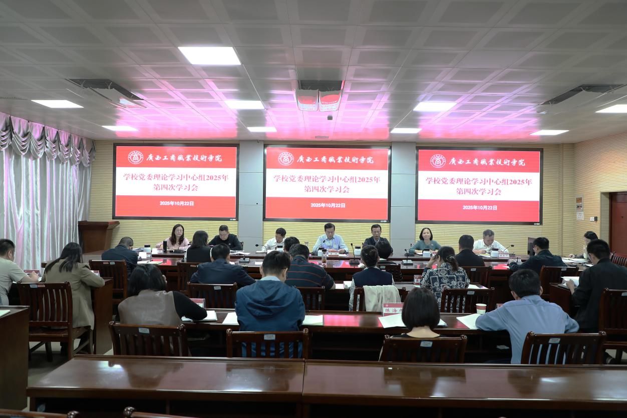 10月22日,學(xué)校召開黨委理論學(xué)習(xí)中心組2025年第四次學(xué)習(xí)會,重點圍繞深入學(xué)習(xí)領(lǐng)會習(xí)近平總書記關(guān)于廣西工作論述的重要要求、深入學(xué)習(xí)領(lǐng)會習(xí)近平總書記關(guān)于鑄牢中華民族共同體意識的重要論述、深入學(xué)習(xí)領(lǐng)會《習(xí)近平談治國理政》第五卷等開展學(xué)習(xí)研討。學(xué)校黨委書記李維主持會議。