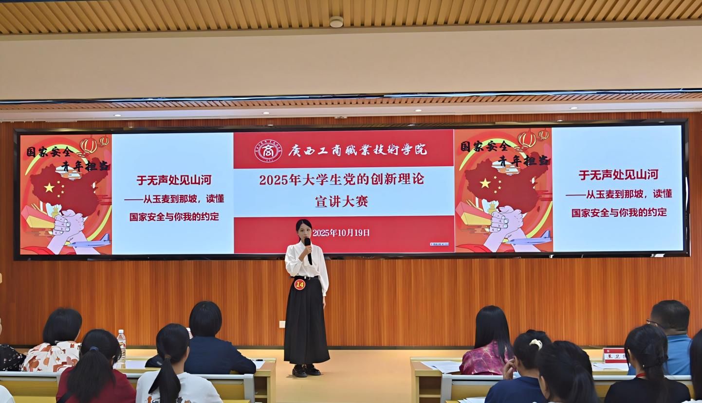 選手們的精彩表現(xiàn)贏得了現(xiàn)場(chǎng)師生的陣陣掌聲。賽后,廣西農(nóng)業(yè)職業(yè)技術(shù)大學(xué)馬克思主義學(xué)院副院長蔣飛燕教授作現(xiàn)場(chǎng)點(diǎn)評(píng),她充分肯定了大賽的組織水平和選手的整體表現(xiàn),并指出,今后的理論宣講應(yīng)進(jìn)一步結(jié)合學(xué)校商科背景與職業(yè)教育特色,注重選題精準(zhǔn)、表達(dá)生動(dòng),善用“小切口”展現(xiàn)“大情懷”,切實(shí)推動(dòng)黨的創(chuàng)新理論在青年群體中入腦入心、落地生根。