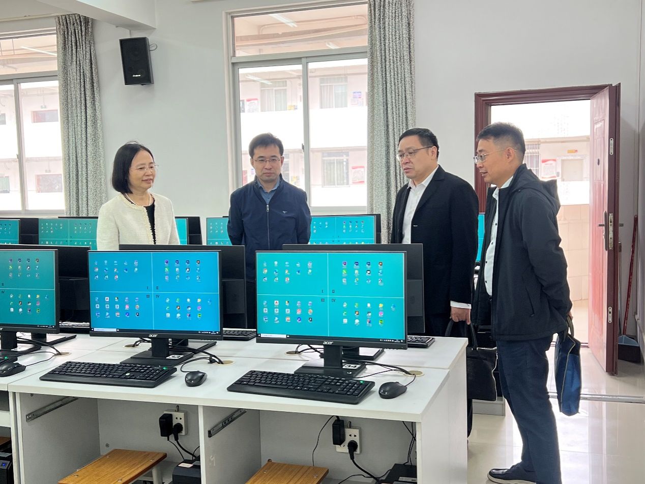 在韋云鳳的陪同下,黃楊劍一行還參觀了我校鵬飛校區(qū)計(jì)算機(jī)實(shí)訓(xùn)室,通過(guò)實(shí)地查看,詳細(xì)了解了我校標(biāo)準(zhǔn)化考場(chǎng)建設(shè)進(jìn)度及相關(guān)配套設(shè)施情況。