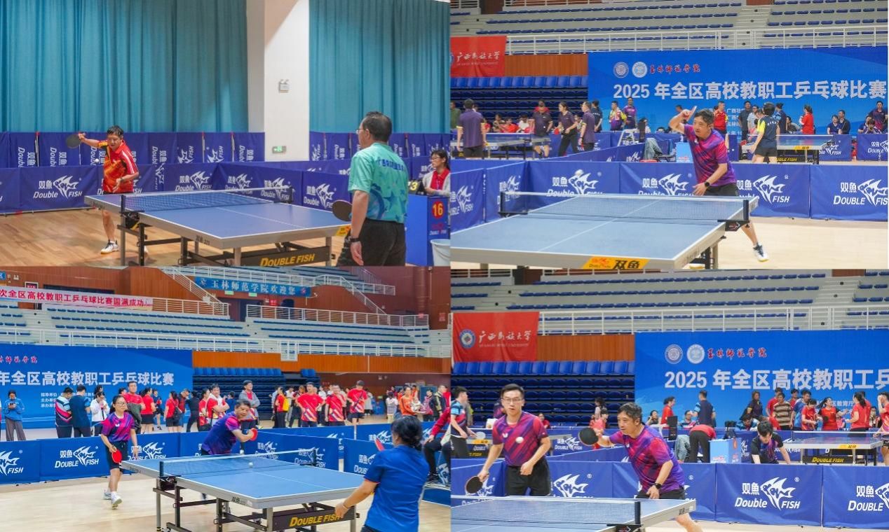 10月23日至26日,由廣西壯族自治區(qū)教育廳指導(dǎo)、廣西學(xué)校體育衛(wèi)生藝術(shù)學(xué)會主辦、玉林師范學(xué)院承辦的全區(qū)高校教職工乒乓球比賽在玉林師范學(xué)院成功舉辦。本次比賽共有來自全區(qū)高校的33支代表隊、479名運動員和教練員參加。我校由黨委副書記、工會主席安仲文帶隊參賽并作為隊員出戰(zhàn)。
